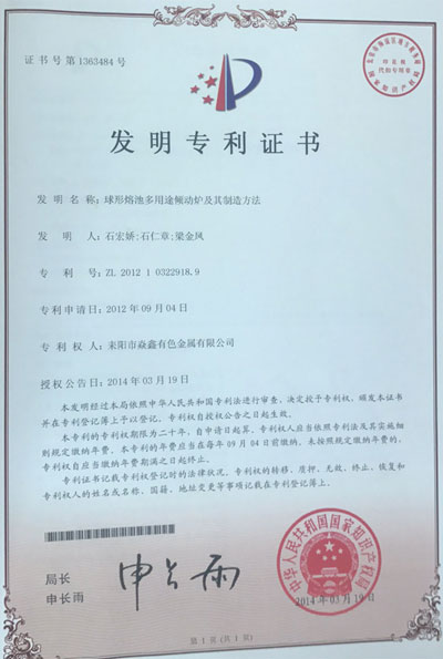 1 | 發(fā)明 | 2012.09.04 | 2012103229189 | 球形熔池多用途傾動爐及其制造方法 |