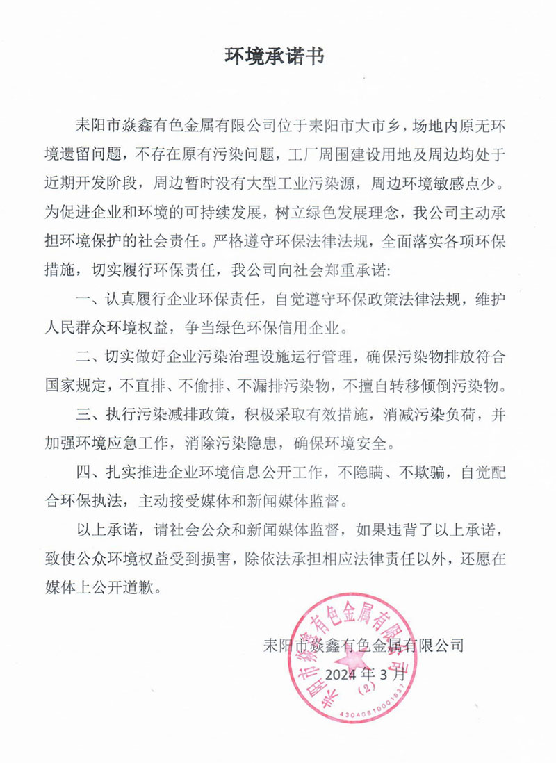 環(huán)境承諾書