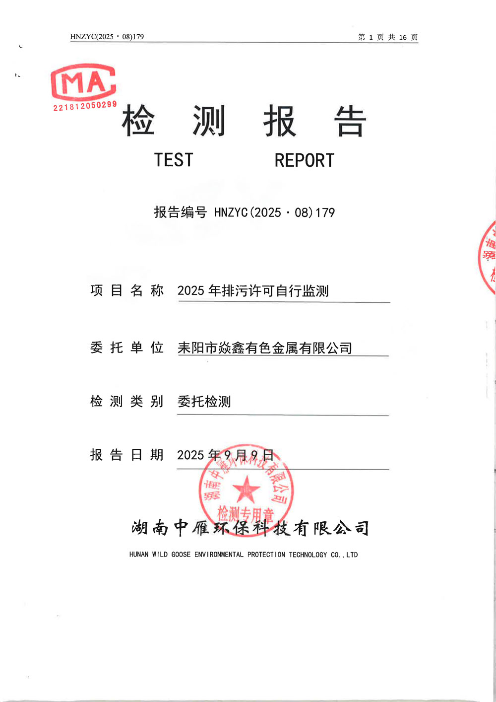 2025年排污許可自行監(jiān)測(cè)檢測(cè)報(bào)告